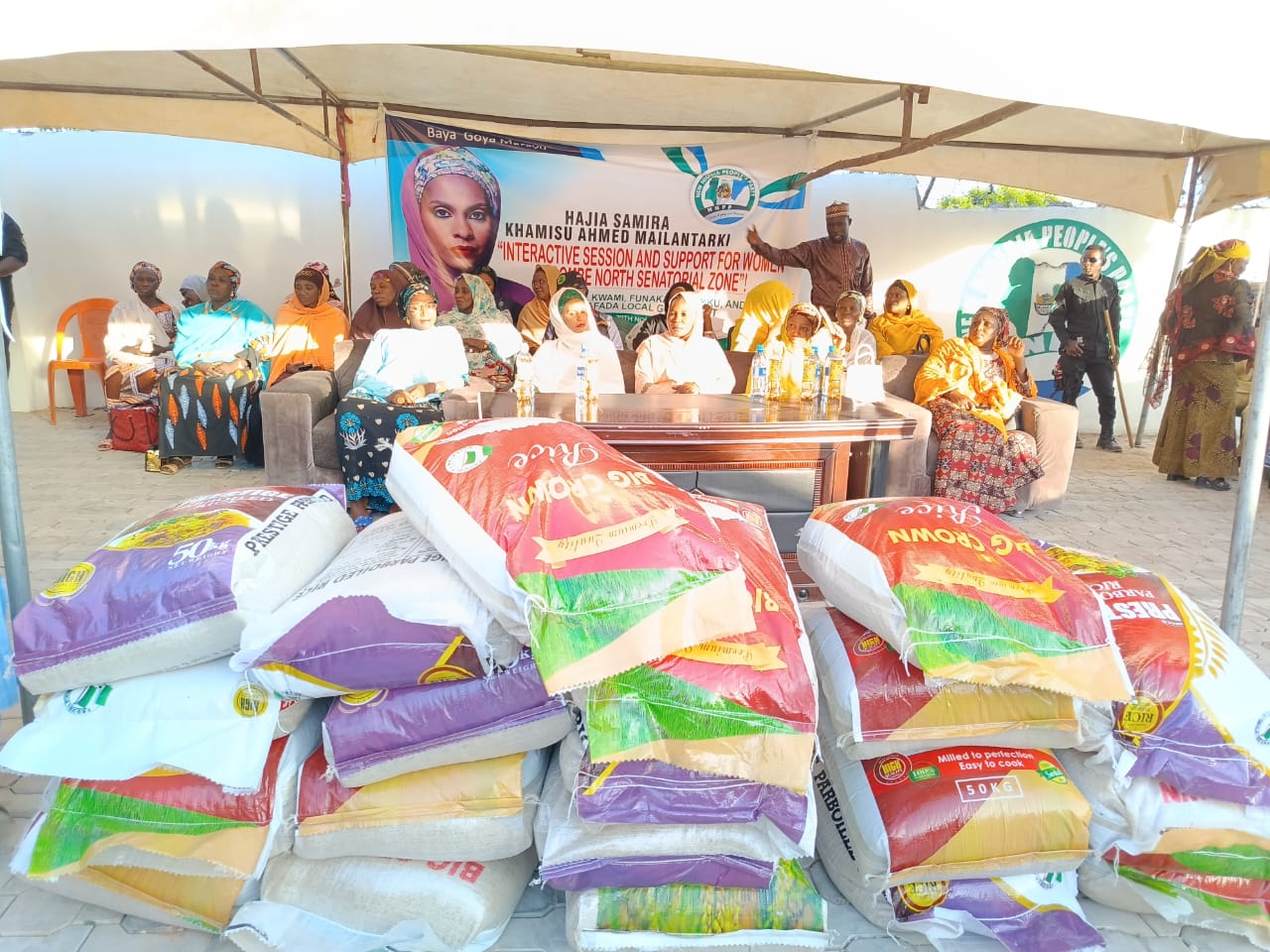 As part of her efforts to garner support for her husband’s aspiration, Wife of Gombe State gubernatorial candidate of the New Nigeria Peoples Party (NNPP) in the forthcoming 2023 general elections, Hajiya Samira Khamisu Mailantarki has given out bags of rice and other food items to NNPP Ward women leaders of the Mailantarki 2023 Support Groups and Kwankwasiyya Movement in the state.