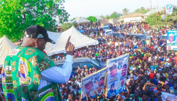 2023: Gombe Governor calls on people to support APC candidates, gets hero’s welcome in Kwami LG, as Deputy Speaker, Siddi Buba, Shu’aibu Adamu receive APC flags