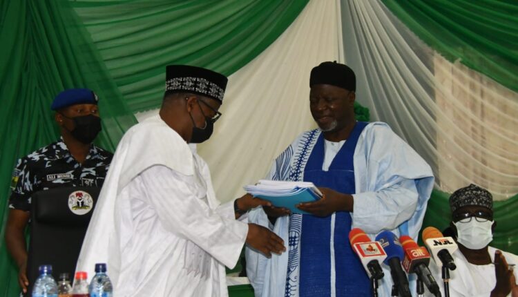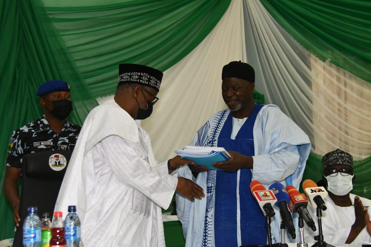 Bauchi State Governor, Senator Bala Mohammed receiving the contact committee report from the Chairman, Sen Adamu Gumba