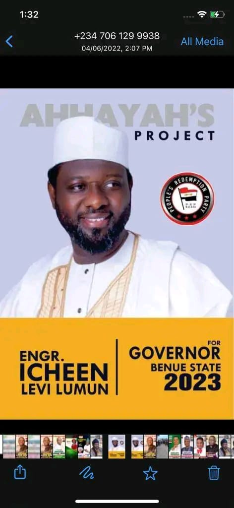 Engr. Levi Lumun Icheen, Benue State governorship candidate of the Peoples Redemption Party (PRP), the party which came third in the last governorship election in the state is among the parties expected to put up interesting outing, come March, 2023.