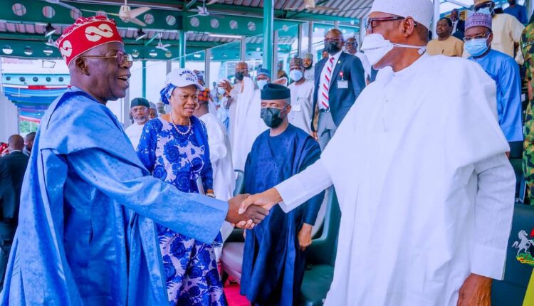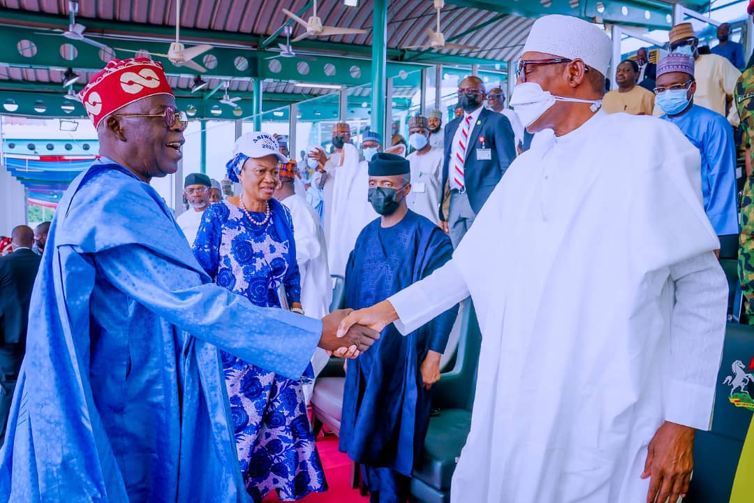 APC presidential candidate Asiwaju Tinubu with President Buhari, right