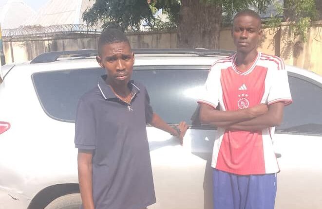 Adamawa State Police Command apprehends two youngsters in connection with a stolen Toyota RAV4, with registration number RSH 548 BB belonging to Mr. Aliyu Umar of Wuro Hausa, Yola South Local Government Area of the state.