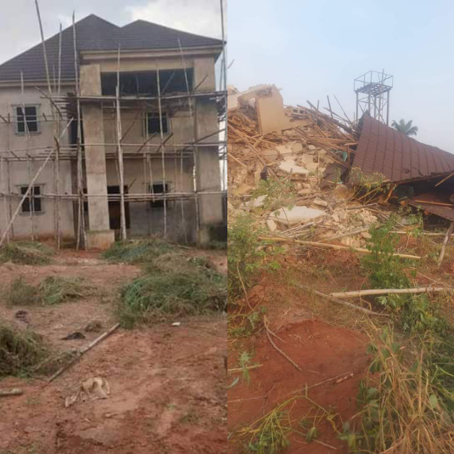 Our correspondent gathered that the building, a duplex, which was constructed in the Executive Business District area of Awka, near the abandoned government house was demolished on Wednesday last week.