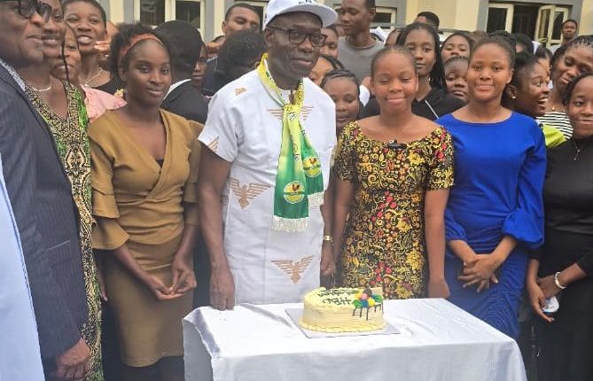 His final stop was at Iyienu Mission Hospital, Ogidi, where he shared a light-hearted moment cutting a birthday cake with students and staff. His presence lifted the spirits of many and reinforced his administration’s dedication to the welfare of the vulnerable.