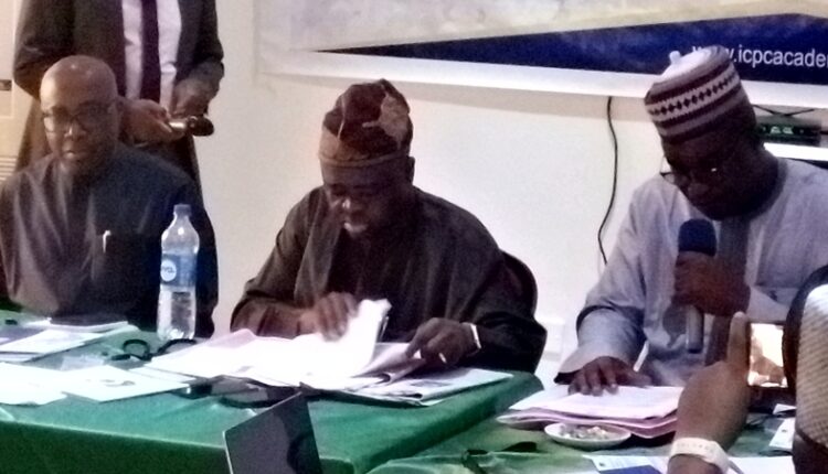 From left: Former Provost of ACAN, Professor Sola Akinrinnade, his successor, Professor Olatunde Babawale and Secretary of ICPC, Professor Musa Usman Abubakar, at the meeting of experts