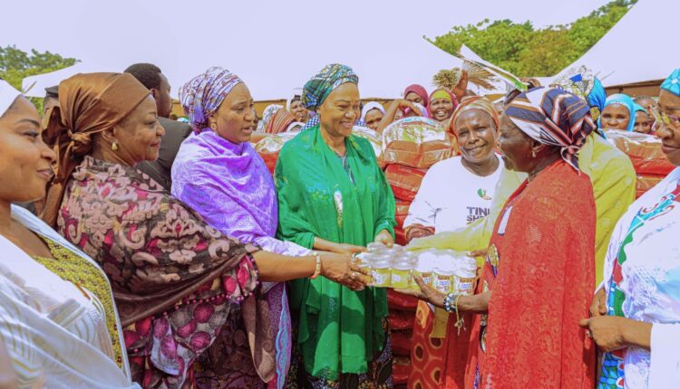 Senator Oluremi Tinubu and Hajiya Nana Shettima when they distribute relief materials to IDPs in Area 1, Abuja