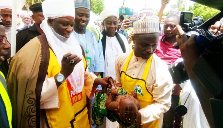 The Emir of Dass, Alhaji Usman Bilyaminu Othman administering vaccine to a baby