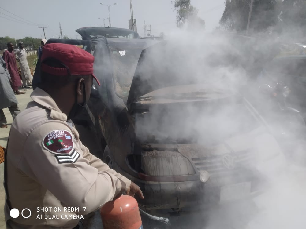 The incident occurred when a Sharon VW mini bus went on flames along the Bauchi – Dass Federal Highway fully loaded with passengers but the timely arrival of FRSC personnel with the fire extinguisher truck saved the vehicle and the passengers from being burnt.