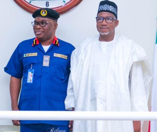 New NSCDC Bauchi Commandant, Ilelaboye Olajide with Governor Bala Mohammed, right