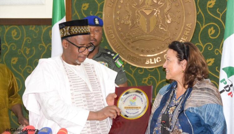 Bauchi Governor, Senator Bala Mohammed with the UNICEF Country Representative to Nigeria, Ms Cristian Munduate, right, at the Government House, Bauchi