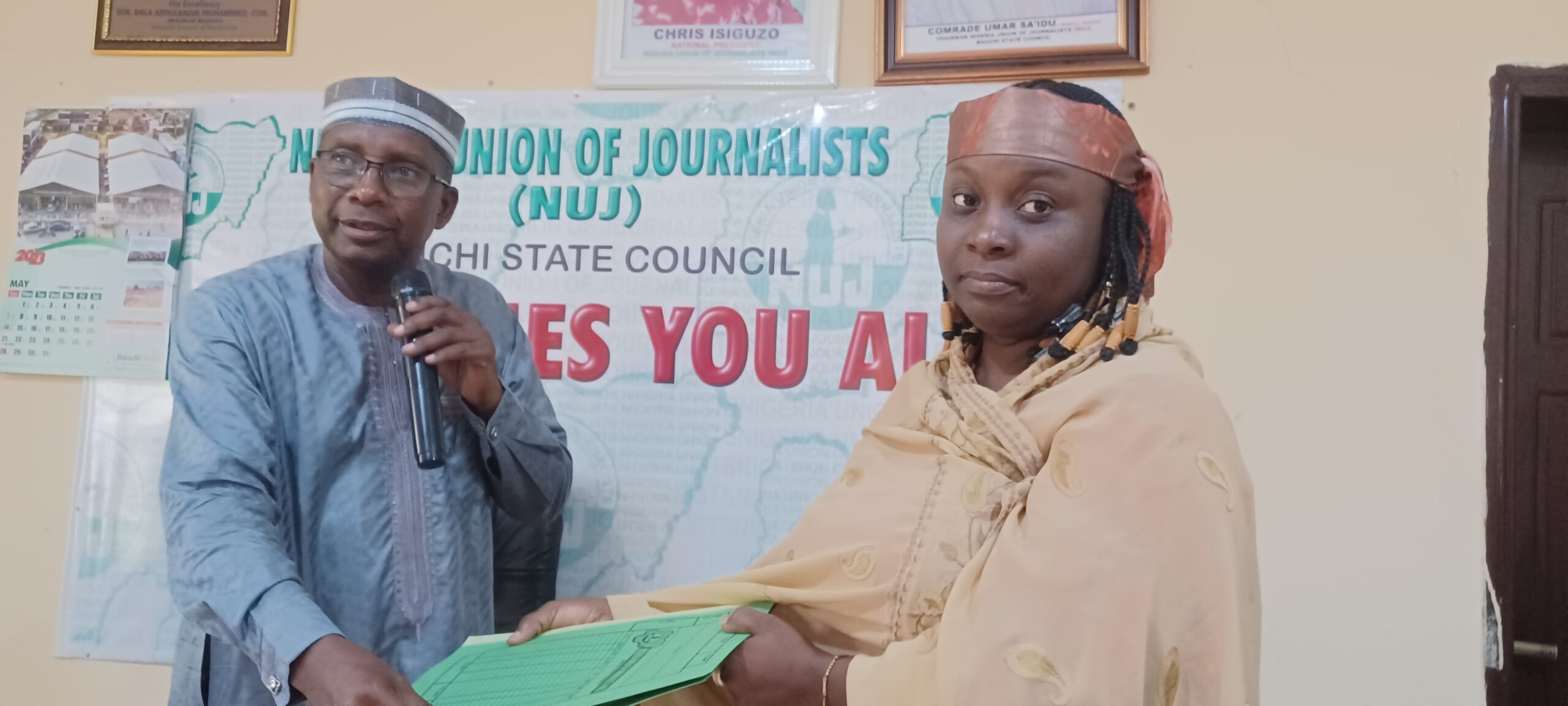 Bauchi NUJ Chairman, Comrade Umar Sa’idu handing over documents to the Electoral Committee Chairperson, Bulak Afsa, right