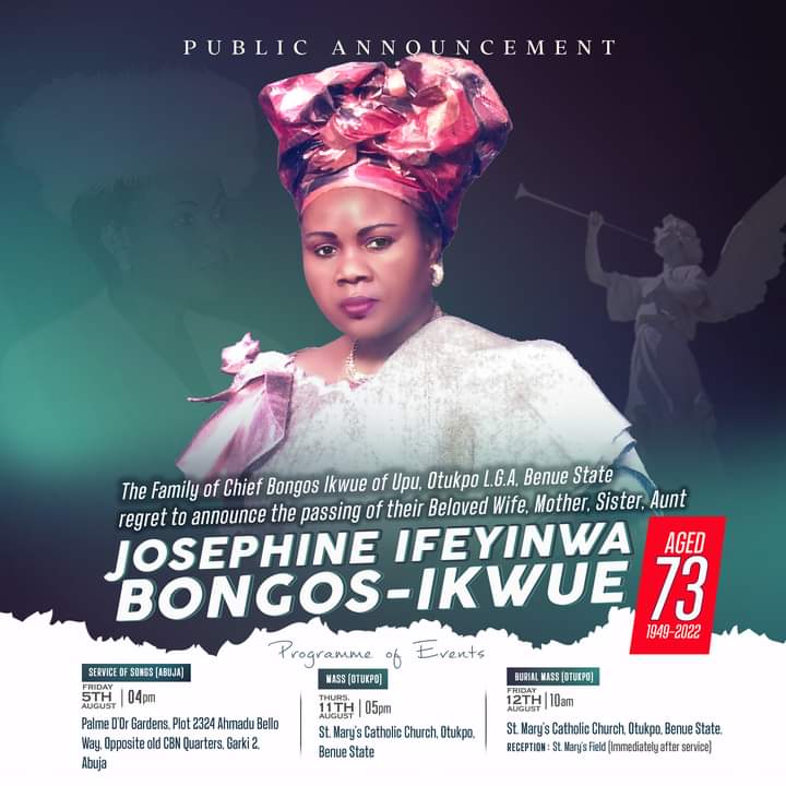 Governor Samuel Ortom has on behalf of the Government and people of Benue State consoled the music legend, Bongos Ikwue over the death of his wife, Josephine Ifeyinwa Ikwue.