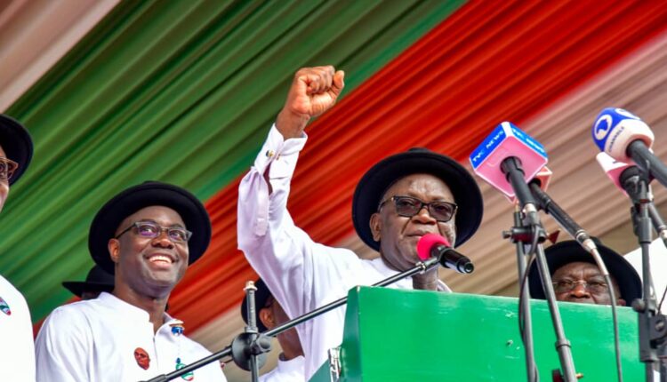Governor Ortom spoke Saturday, November 19th, 2022 at the Adokiye Amiesimaka Stadium during the flag off of the Peoples Democratic Party campaign in Port Harcourt, Rivers State.