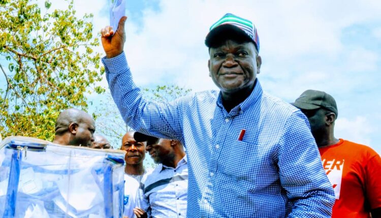Benue State Governor, Samuel Ortom after casting his vote at LEA Primary School, Gbajimba, Guma local government area