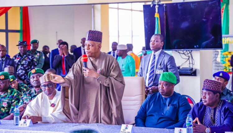 From right: Senator Lalong, Governor Caleb Mutfwang, Vice President Shettima and National Security Adviser, Nuhu Ribadu during Shettima’s visit to Plateau to evaluate the extent of attacks on some communities