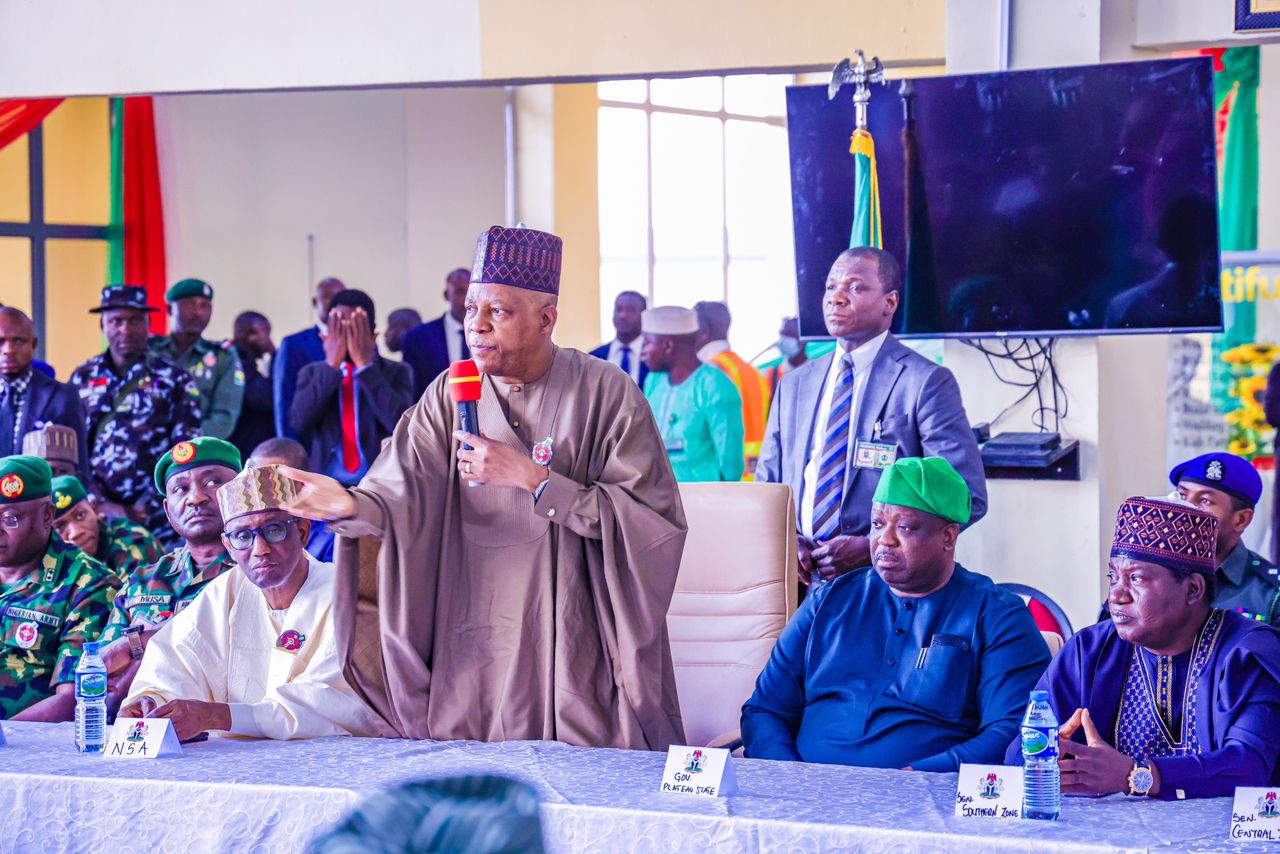 The Vice President and National Security Adviser later addressed stakeholders at the Yakubu Gowon Airport Heipang before departing Jos.