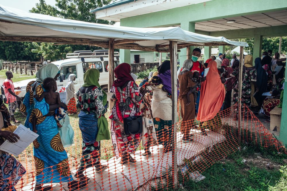 People queuing at MSF’s ambulatory therapeutic feeding center (ATFC), Kende Primary Health Center, Bagudo, Kebbi, Nigeria, 20 July 2022.
