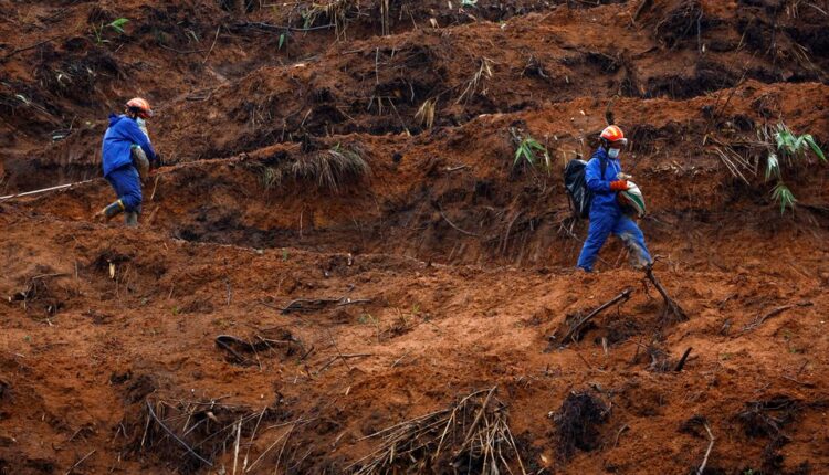 Rescue workers walk at the site where a China Eastern Airlines Boeing 737-800 plane flying from Kunming to Guangzhou crashed, in Wuzhou, Guangxi Zhuang Autonomous Region, China March 24, 2022. REUTERS/Carlos Garcia Rawlins/File Photo