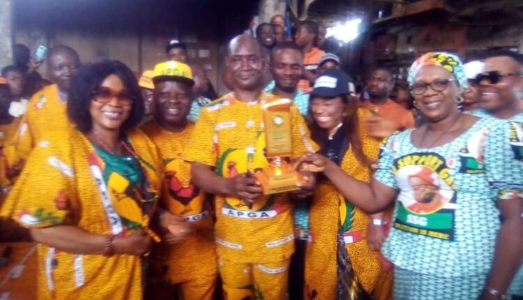 Presenting the award on behalf of APGA in the Local government Hon. Noble Igwe noted that Chief Ndubuisi Ochiogu merited the award, describing him as a performing Market Leader.