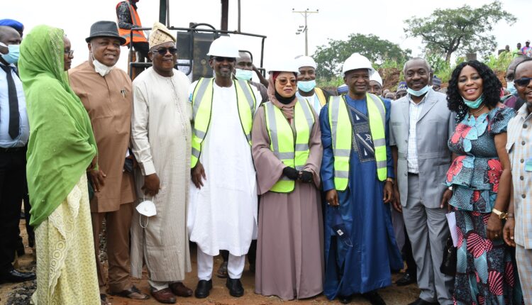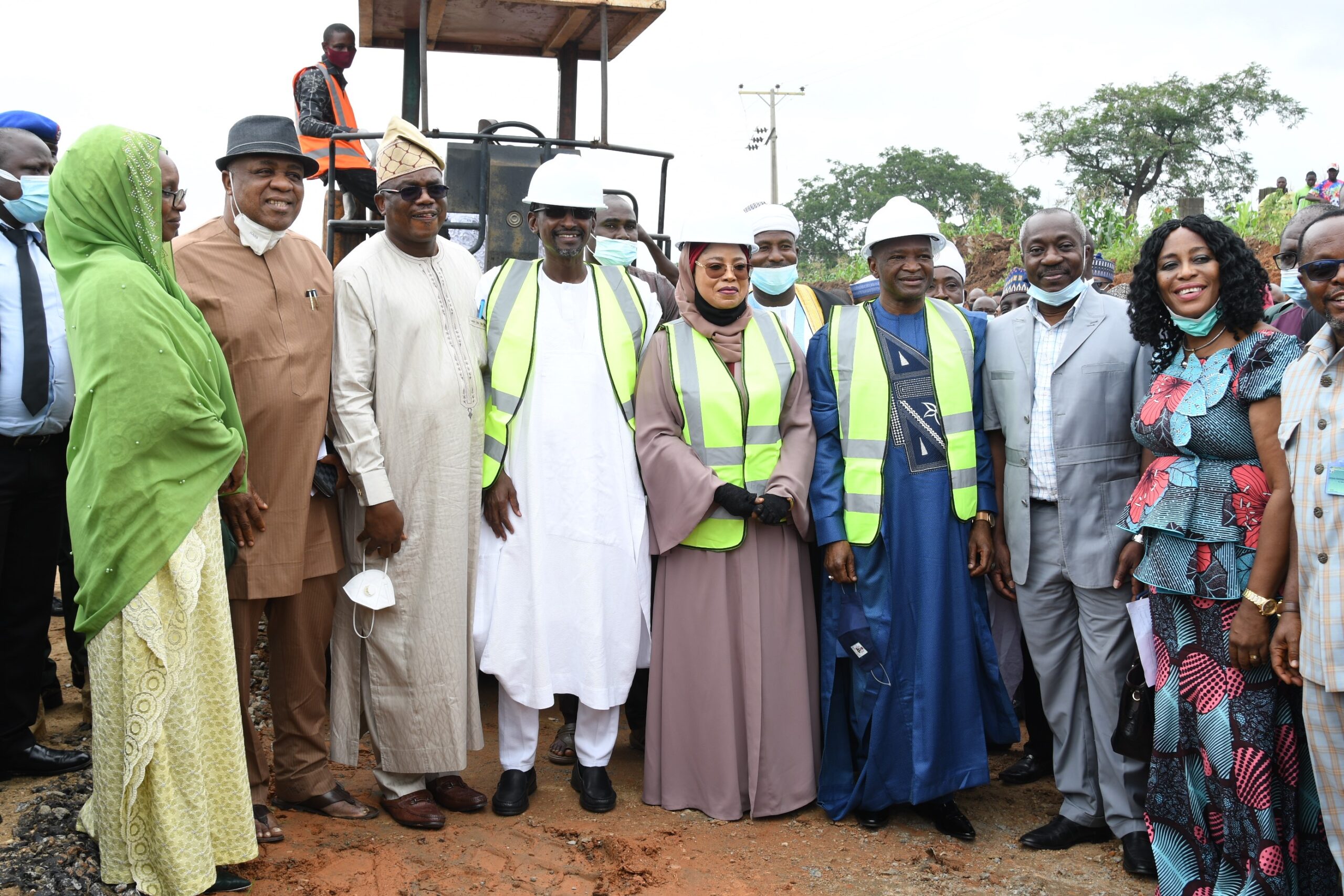 FCT Minister, Malam Muhammad Musa Bello (4th left), FCT Minister of State, Dr Ramatu Tijjani Aliyu (5th left) Minister for Environment, Dr Muhammad Mahmood Abubakar(6th left) Permanent Secretary, FCTA, Mr Olusade Adesola (3rd left) and other officials of the FCTA and Environment Ministry, at the Flag off of construction of access road and car park of the Kagini Train Station in Abuja Thursday.