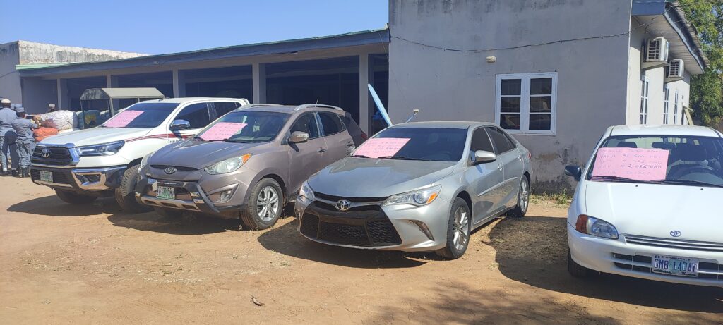 During the period under review, 675 Bags of 50kg foreign parboiled rice; 252 Cartons of foreign Soap; 250-cartons of foreign spaghetti; 42 pieces of alloy rims; 5 Units of used imported vehicles and 17 vehicles used as means of conveyance were seized.