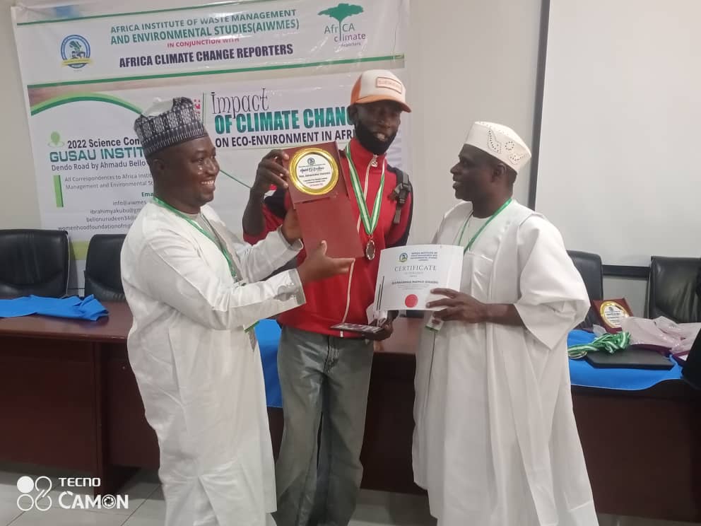 African Institute of Waste Management and Environmental Studies has awarded Ibrahima Yakubu, a senior correspondent of German International Radio (Deutsche Welle), Hausa Service, with an honor for outstanding sacrifice towards reportage relating to science, climate change, tropical disease, environmental degradation and efforts protection marine species against extinction due to human irrational activities of dumping all sorts of trash and garbage into the river.