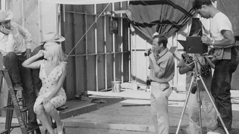 Erwitt (R) takes photographs of actors Marilyn Monroe and Montgomery Clift on set of The Misfits in 1960