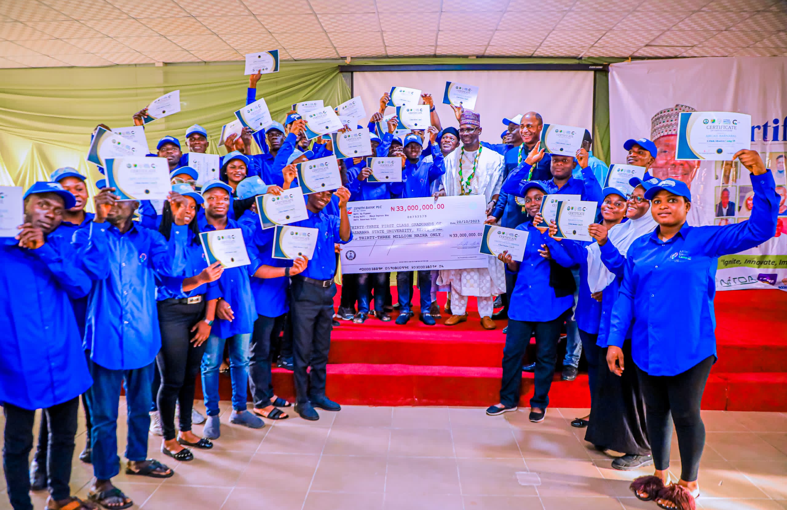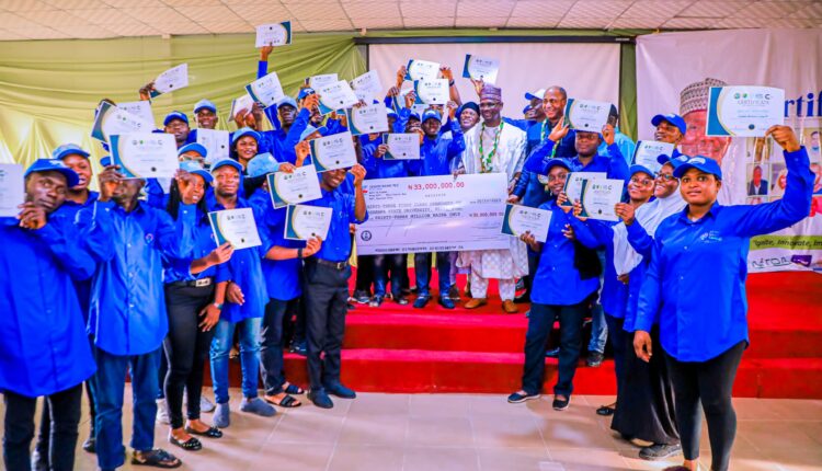 Engineer Sule presented a cheque worth N33m to the graduates at their graduation ceremony having underwent a three-weeks intensive training in agriculture under the AASule Ideation Camp 33, in Gora, near Keffi, on Friday.