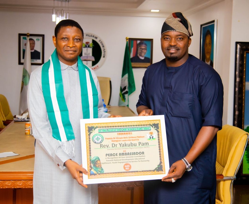The Executive Secretary of Nigerian Christian Pilgrim Commission, Rev. Dr Yakubu Pam has bagged an award of Excellence by the National Association of Northern Nigerian Students (NANNS). The award was presented to him in his office at the NCPC corporate headquarters in Abuja, on 9th August, 2022.