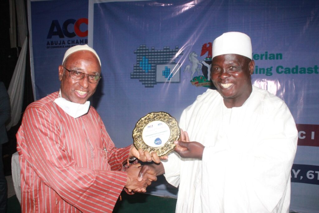 The President ACCI, Dr. Al-Mujtaba Abubakar, left, giving award to the representative of Adamawa State, represented by the Permanent Secreatary, Adamawa State Ministry for LGA, Mr. Jadeth Gejere