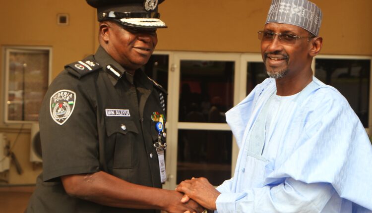 AIG Zone 7, Abuja, Mr Muhammed Ndatsu Aliyu in a handshake with the FCT Minister, ,Malam Muhammad Musa Bello, right, during the visit of the AIG to the FCT Minister
