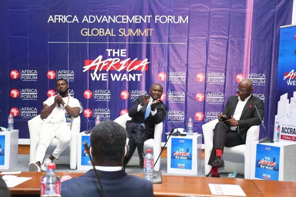 Vice President of Liberia, Dr. Jowel Howard-Tailor (right) engaging the Founder, African Children Talent Discovery Foundation (ACTDF), Engr Noah Dallaji on the issue during the global summit of Africa Development Forum in Ghana.