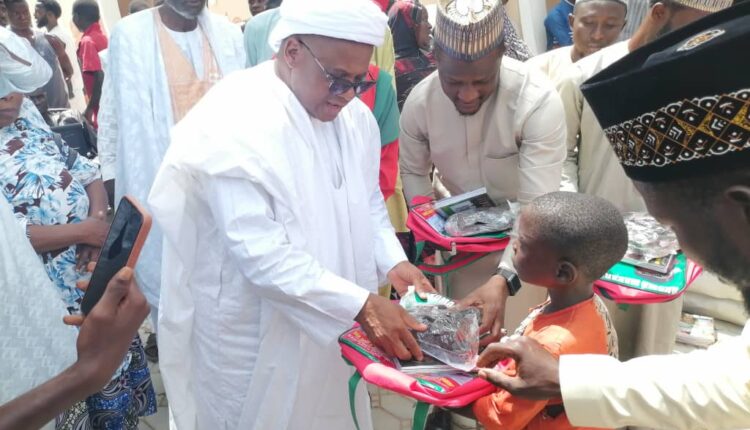 District Head of Jama’are, Alhaji Bala Suleiman, Dan Galadiman Bauchi distributing the educational materials to some children at the event in Nabardo