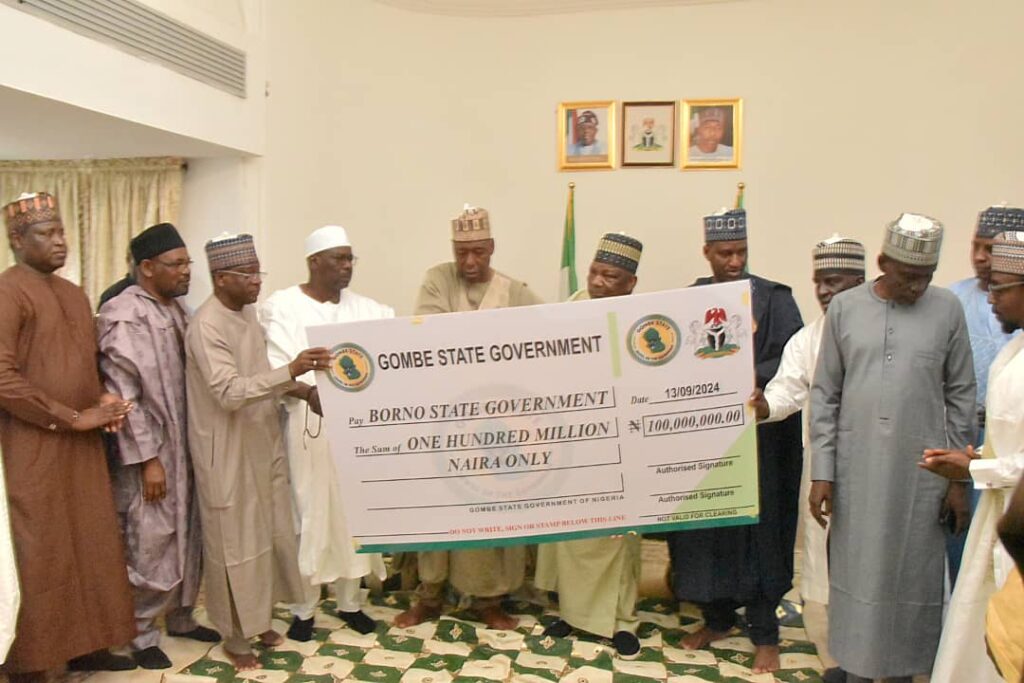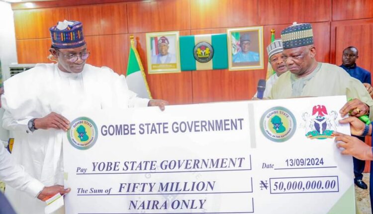 Gombe State Government on Friday, donated the sum of N150m to victims of natural disasters in neighbouring Borno and Yobe states.