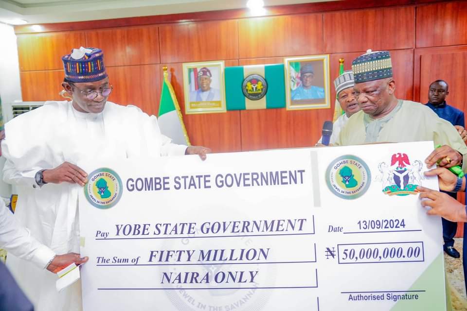 In Damaturu, Gombe Government donated the sum of ₦50 Million to support victims of Mafa terror attack, and flood disaster in Yobe State