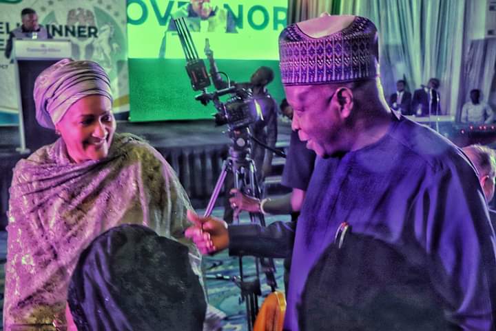 Governor Inuwa shares a point of interest with UN Deputy Secretary-General, Amina Mohammed, left, at the dinner