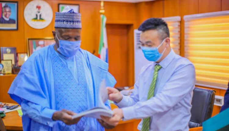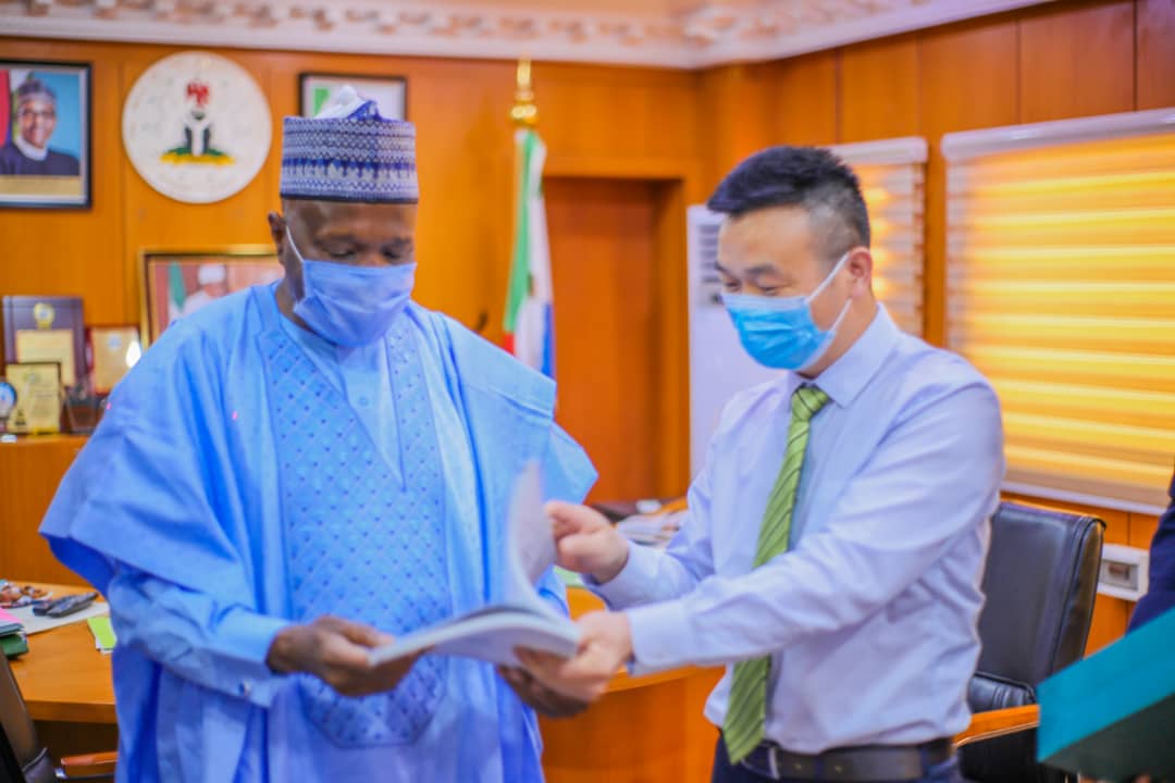Gombe State Governor, Muhammadu Inuwa Yahaya with the Vice President, ZKTecko in charge of West Africa, Mr. Kiven Wu, right