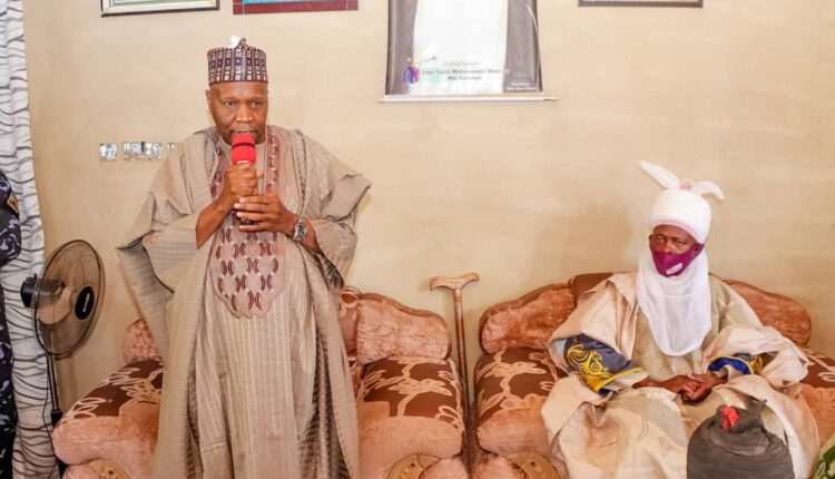 Gombe state Governor, Muhammadu Inuwa Yahaya addresses the District head of Filiya in his Palace