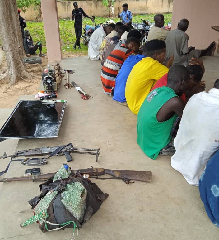 It was reported that, on 30th/06/2023 at about 2100hrs, a team of Operation Hattara while on routine patrol during Sallah Durbar of His Royal Highness, the Emir of Gombe, successfully arrested the above mentioned suspects who were allegedly found in possession of dangerous weapons such as cutlasses, sword and other sharp objects with the intention to attack innocent people and rob them of their valuables, between Bolari and Nasarawo quarters Gombe.