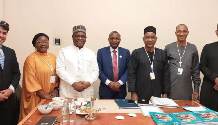 The Gombe State delegation, led by the Chairman of the State’s Investment and Property Development Company, Dr. Umaru Kwairanga met with the IsDB’s Team comprising of Dr. Mansur Mukhtar, Vice President; Dr. Ahsaru Kibria, Country Manager; Mr. Mahmodou Alpha Bah, IsDB Nigeria Office; and Mr. Abdulkadir Baba-Ahmed, from IsDB VPs Office, Jeddah.