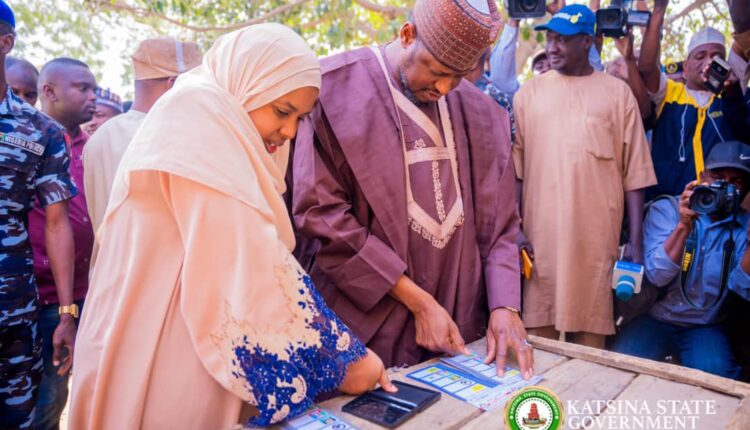 Katsina State Governor, Malam Dikko Umaru Radda, accompanied by his wife, Hajiya Zulaihat Dikko Radda, cast his vote Saturday at Polling Unit 010, Barebari A of Radda ward in Charanchi local government area, during the ongoing local government chairmanship elections in the state.