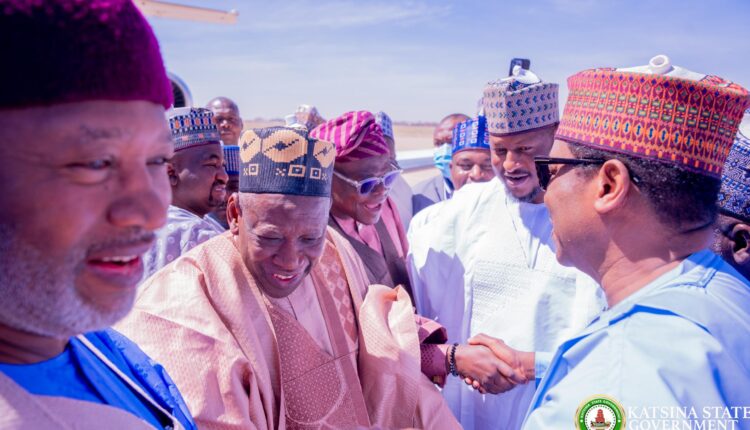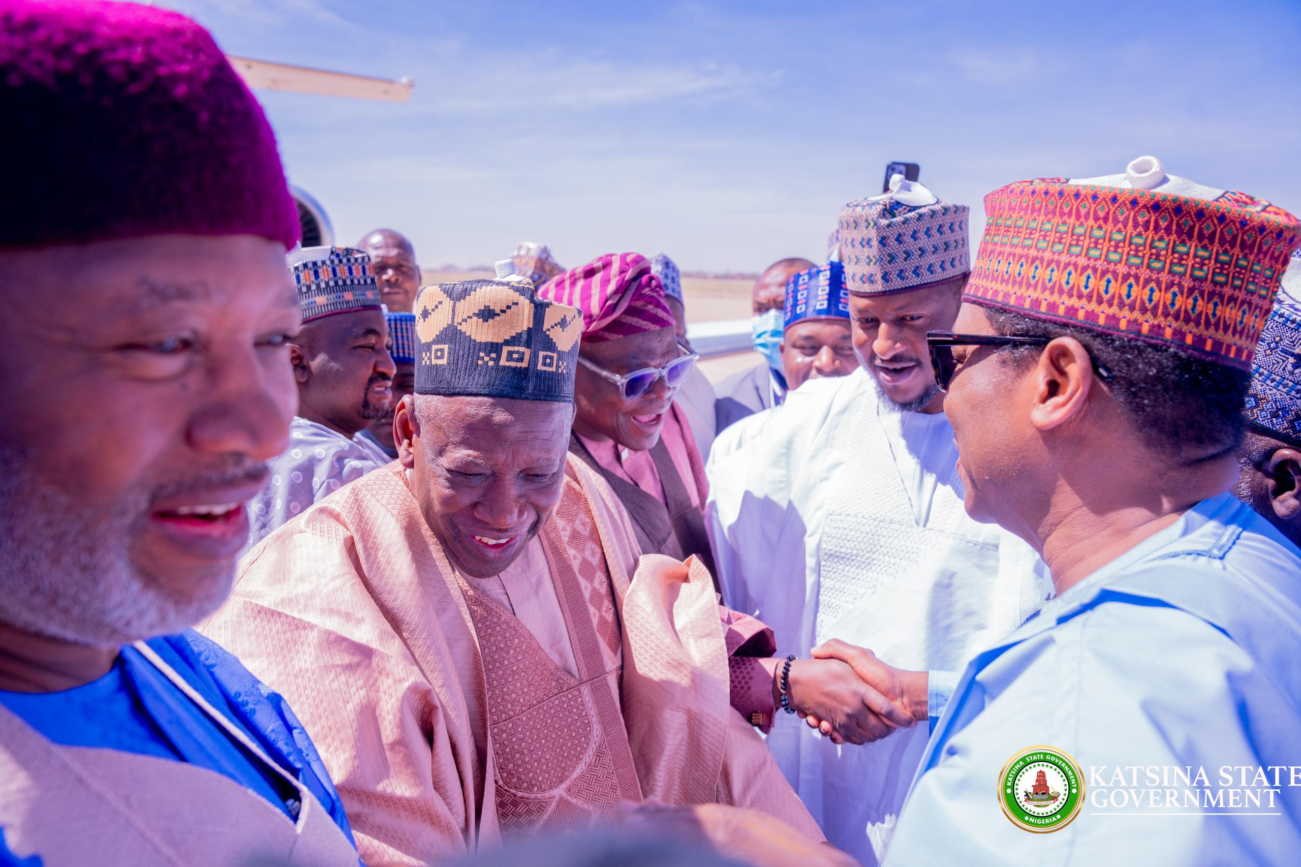 The airport reception included prominent APC state leadership, notably Deputy Governor Faruk Jobe, State Chairman Alhaji Sani Aliyu Daura, Senior Special Assistant to the President on Political and other Matters, Ibrahim Kabir Masari, and the state’s three senators: Abdulaziz Musa Yar’adua, Muntari Dandutse, and Nasiru Sani Zango.