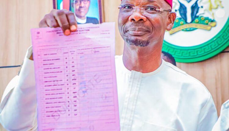 INEC officially declared Engineer Sule as duly reelected for another term in office, having scored 347, 209 votes to beat Hon David Ombugadu of the Peoples Democratic Party (PDP), who scored 283, 016 votes.