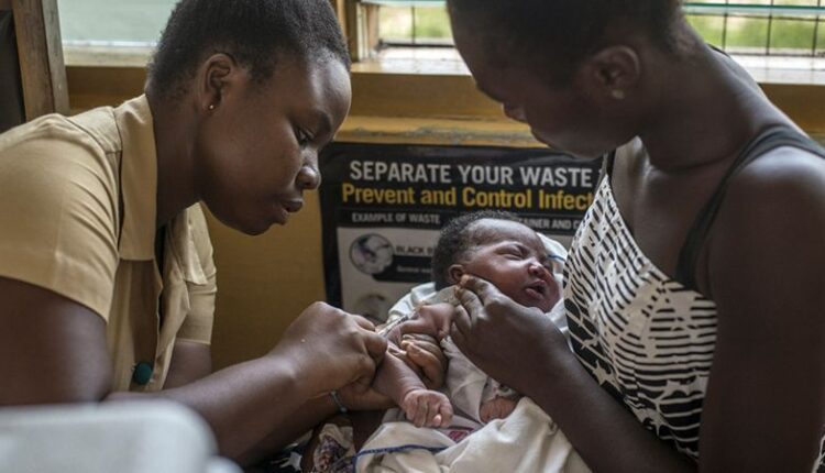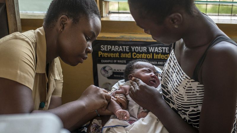 A nurse vaccinates a baby against malaria in Ghana in 2019