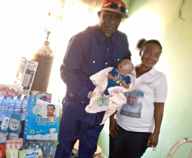 Worried by the baby’s condition, the NGO solicited for support and donated items received including, cloths, 100s of pampers, baby wipes, packs of bottled water, disinfectants, gloves, baby food and drugs.