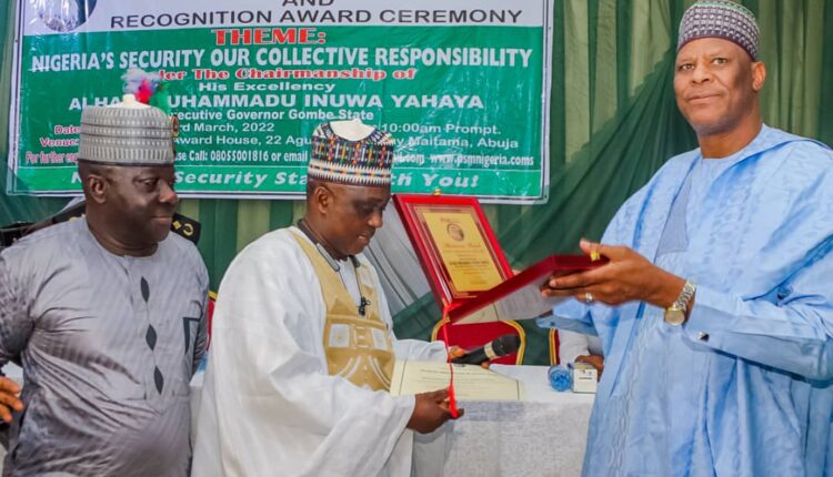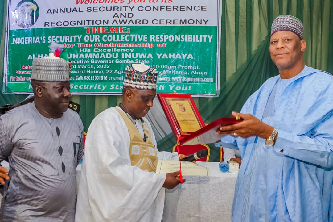 Earlier, the Chief executive officer of PSM, Mr. Ishiaka Mustapha said the award on Governor Muhammadu Inuwa Yahaya as Security Ambassador of Nigeria (SAN) was in recognition of his dedication, sacrifice and commitment to the promotion of peace and security in the country as contained in a statement by Ismaila Uba Misilli Director-General, (Press Affairs), Government House, Gombe.