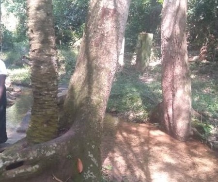 A Mahogany Tree and Palm Tree with same root at the meeting point of the Warm and Cold water of Ikogosi Warm Spring