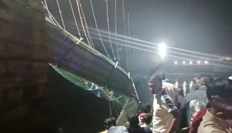 At least 68 people have died after a pedestrian bridge collapsed in India’s western state of Gujarat.