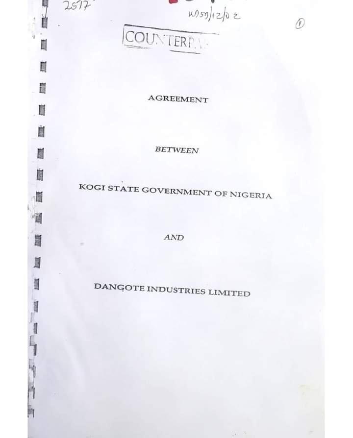 Initial agreement between Dangote, Kogi Government signed in 2002 and reason the state is angry