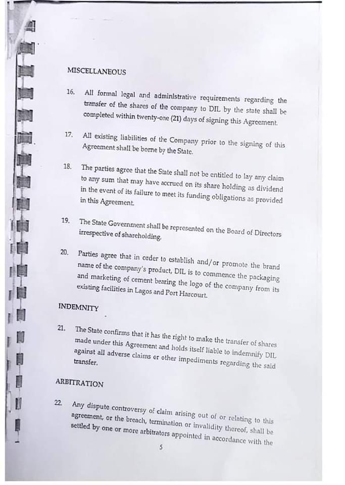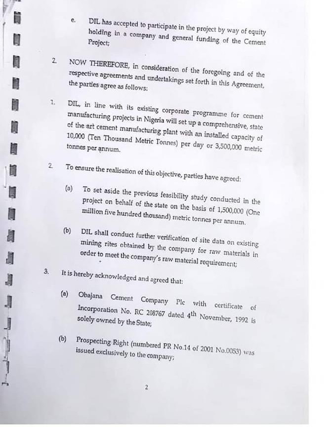 Official: 2002 Agreement Between Kogi State Government and Dangote Industries Limited on Obajana Cement Plant
